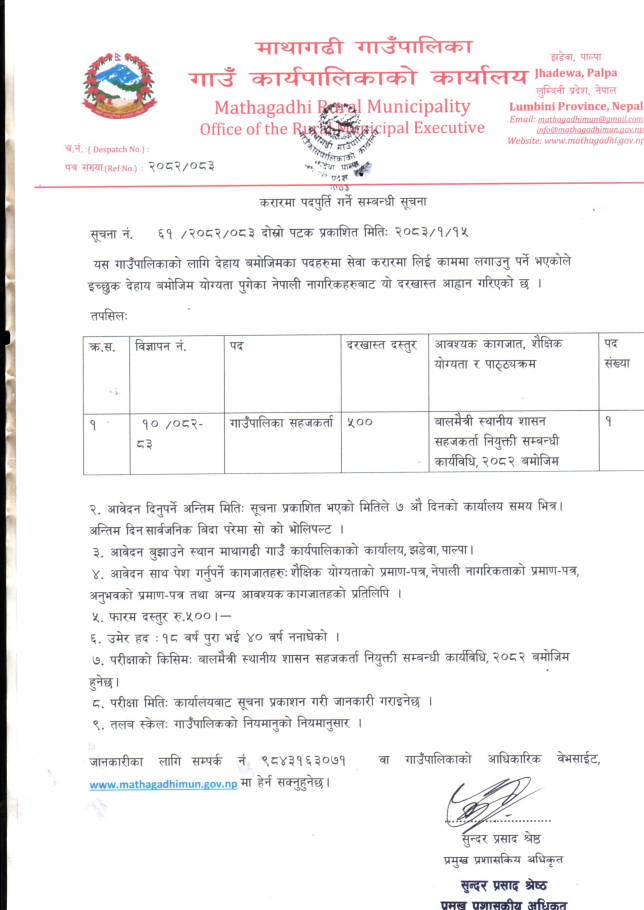 करारमा पदपुर्ति गर्ने सम्बन्धी सूचना