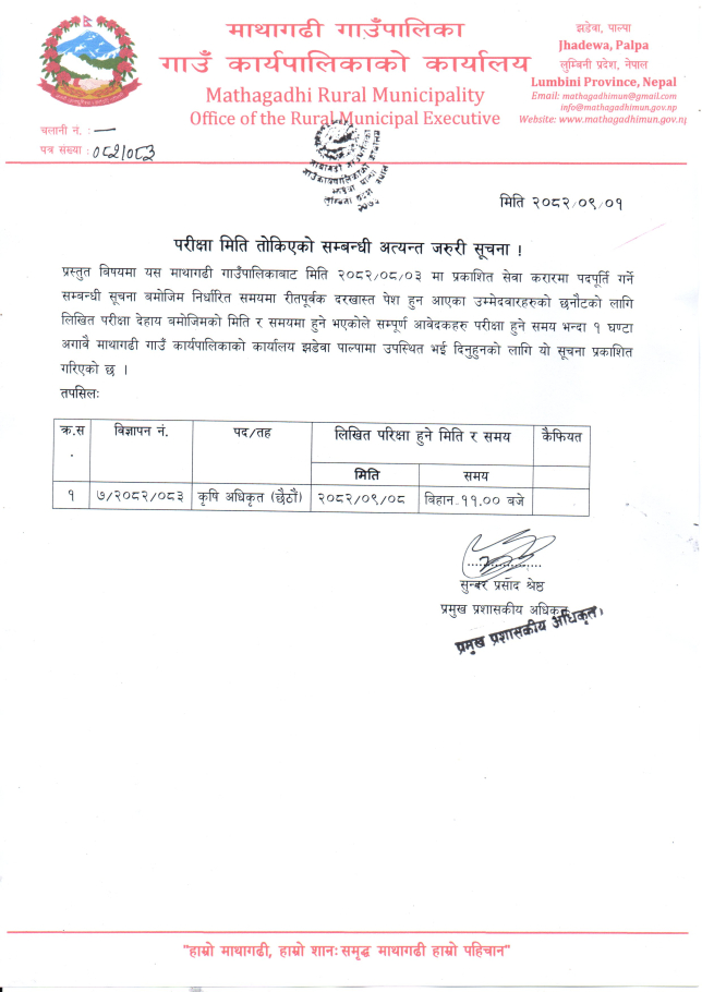 परीक्षा मिति तोकिएको सम्बन्धी अत्यन्न जरुरी सूचना।