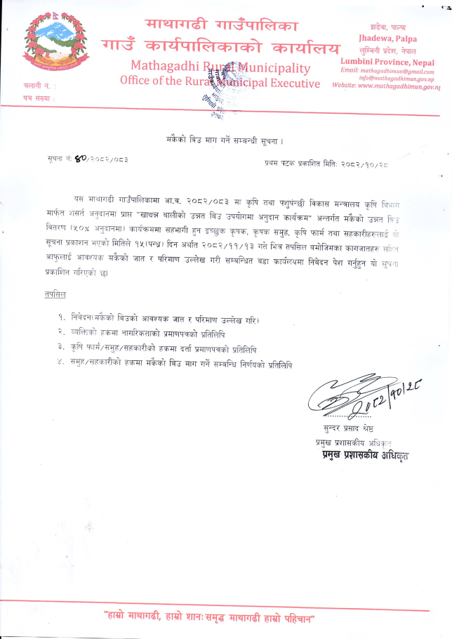 मकैको बिउ माग गर्ने सम्बन्धी सूचना