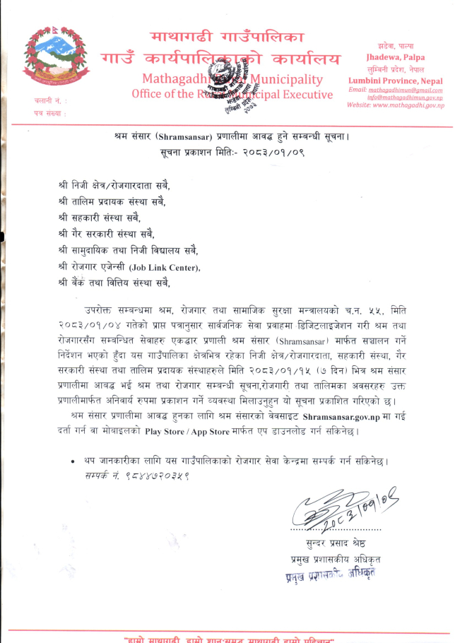 श्रम संसार (Shramsansar) प्रणालीमा आवद्ध हुने सम्बन्धी सूचना ।
