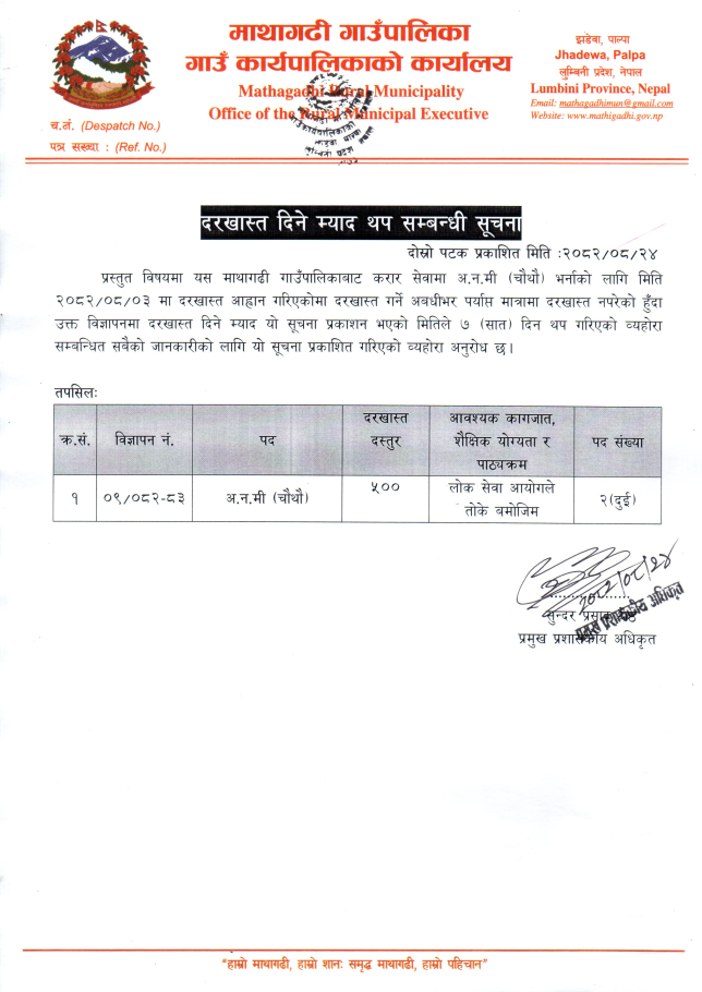 दरखास्त दिने म्याद थप सम्बन्धी सूचना